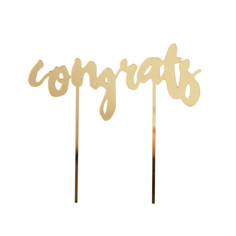 Kiiltävän kultainen kakunkoriste. Koriste on valmistettu akryylistä ja kestää useamman käytön varovasti käsiteltynä. Toimitetaan ihanassa lahjapakkauksessa, erinomainen myös lahjaksi!