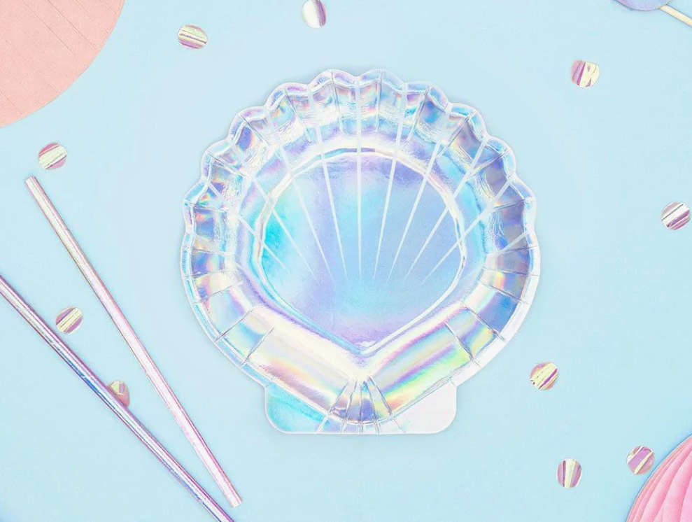 Upeat hohtavat simpukanmuotoiset lautaset. Simpukkalautaset sopivat merenneitojuhliin. Yhdistä muihin teemaan sopiviin tuotteisiin, kuten mukeihin sekä ilmapalloihin!